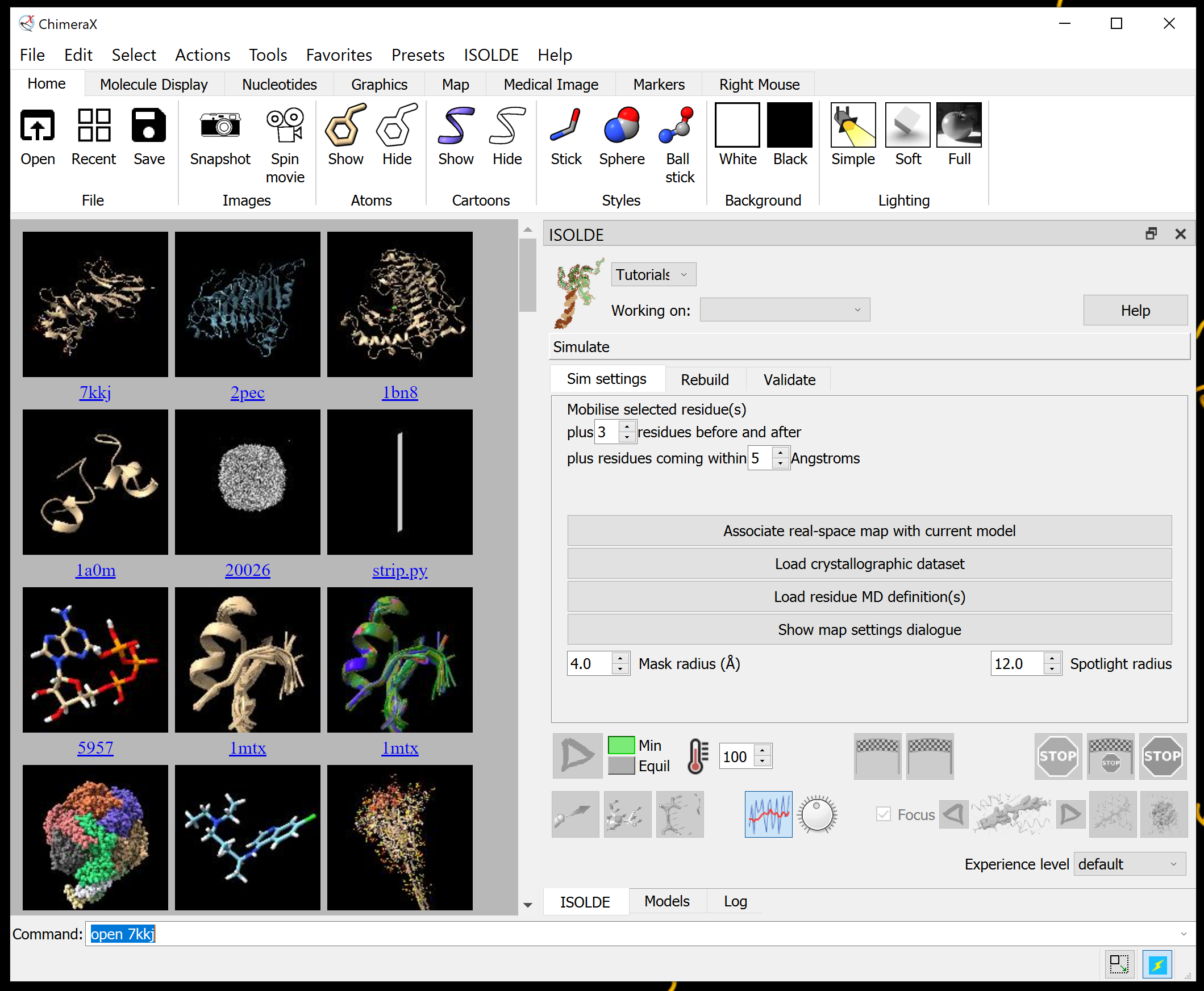 line) is pushed off the bottom of the screen until I shrink and re- maximise it. These days I tend to keep the Log, Models and ISOLDE panel all stacked into a single tabbed widget to reduce the incidence of that (still happens occasionally when I open multiple volumes or sequence viewer instances).