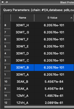 Often some of the column values (Title, Species, ...) are blank but can be discerned from the Description value. The contents of Chain Sequence ID are inconsistent and perhaps that column should be nuked (for AlphaFold searches only, I mean). See ticket #5216. Sometimes the same hit is listed multiple times, #5217.