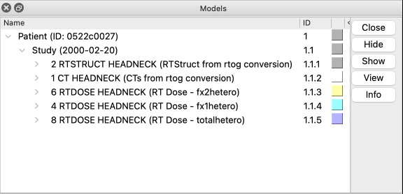 - report series modalit(ies) in the Log when opening DICOM. Remember that the DICOM hierarchy is (1) Patient (2) Study (3) Series, and as I understand it, each series becomes a 3D volume model or 4D volume series in ChimeraX.