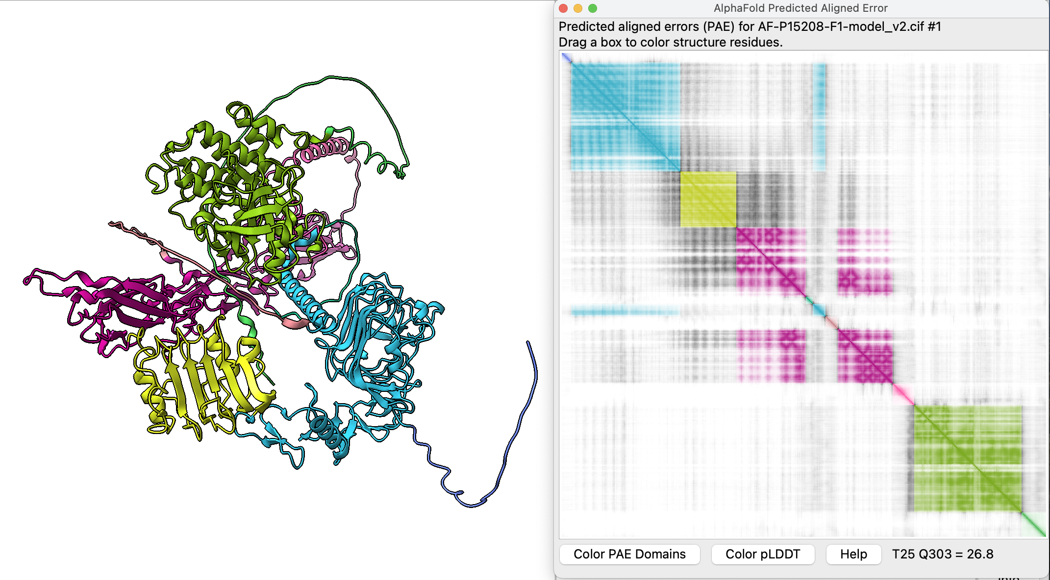Gerard suggests coloring PAE plots using the domain colors, I guess just the diagonal block so you could easily see the domain interaction strengths and visually compare to the structure coloring.