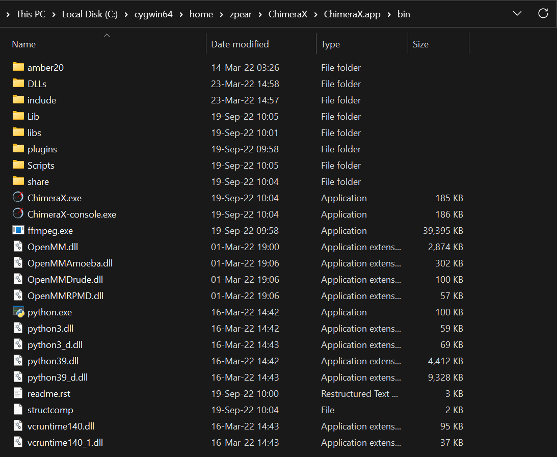 On windows all of ChimeraX lives under C:\\...\\ChimeraX.app\\bin\\