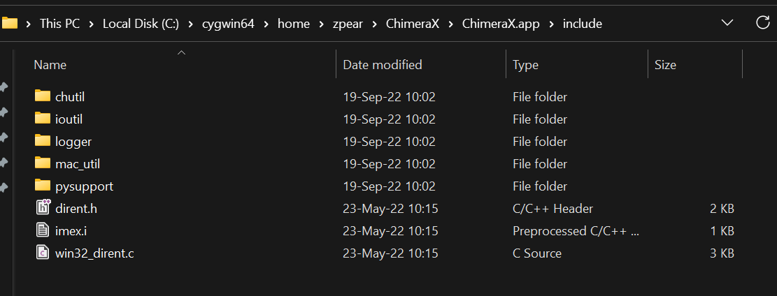 On Windows, ChimeraX.app has bin, include, and lib at the top level. The latter two are not long for this world, pending the conversion of binary bundles to TOML bundle builder -- they only hold libraries and includes from our packages for the old build system.