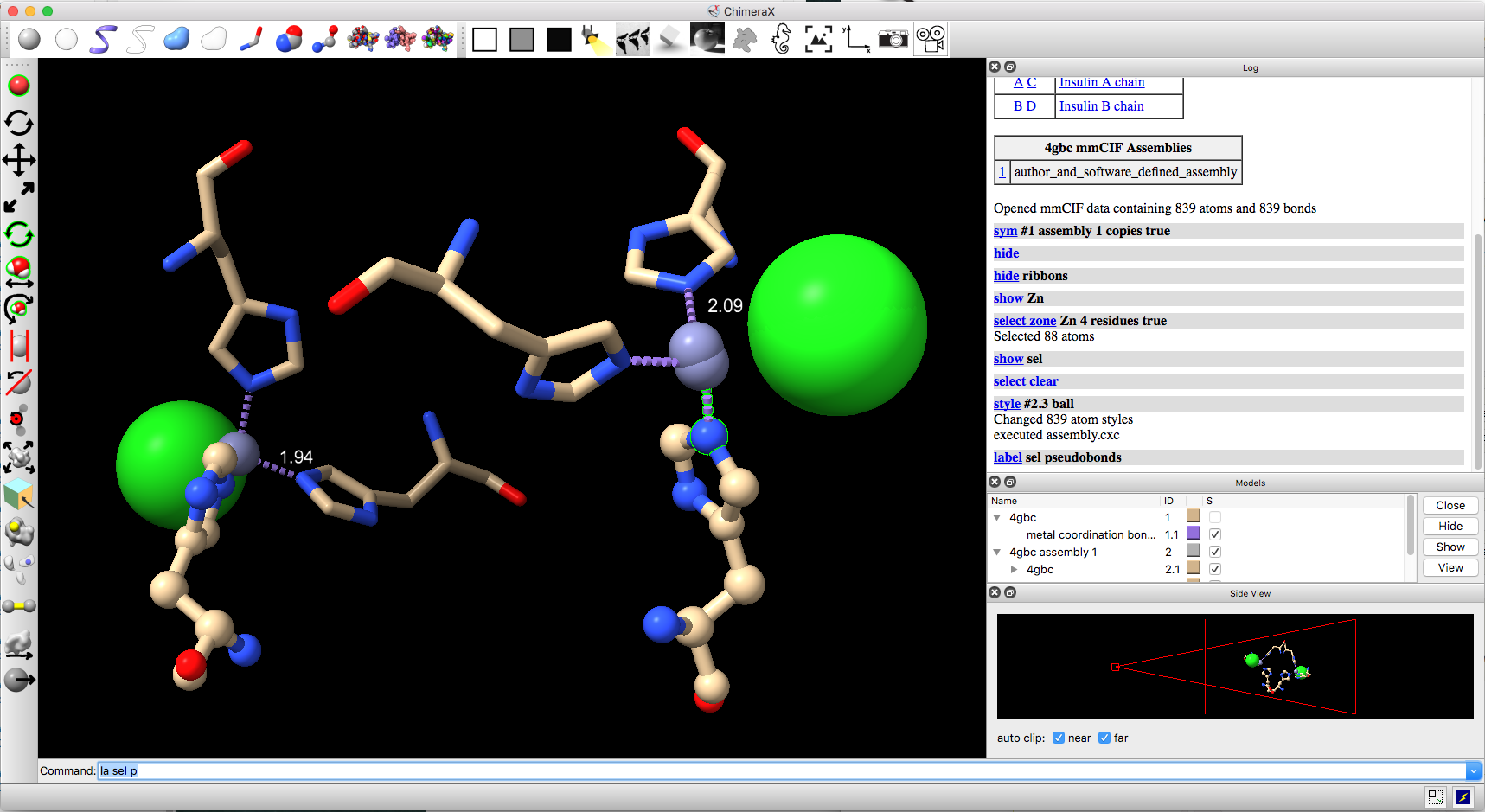 If I select one of the pseudobonds from #2.3 (shown in ball-and-stick since the residue labels don't help distinguish the copies) and use