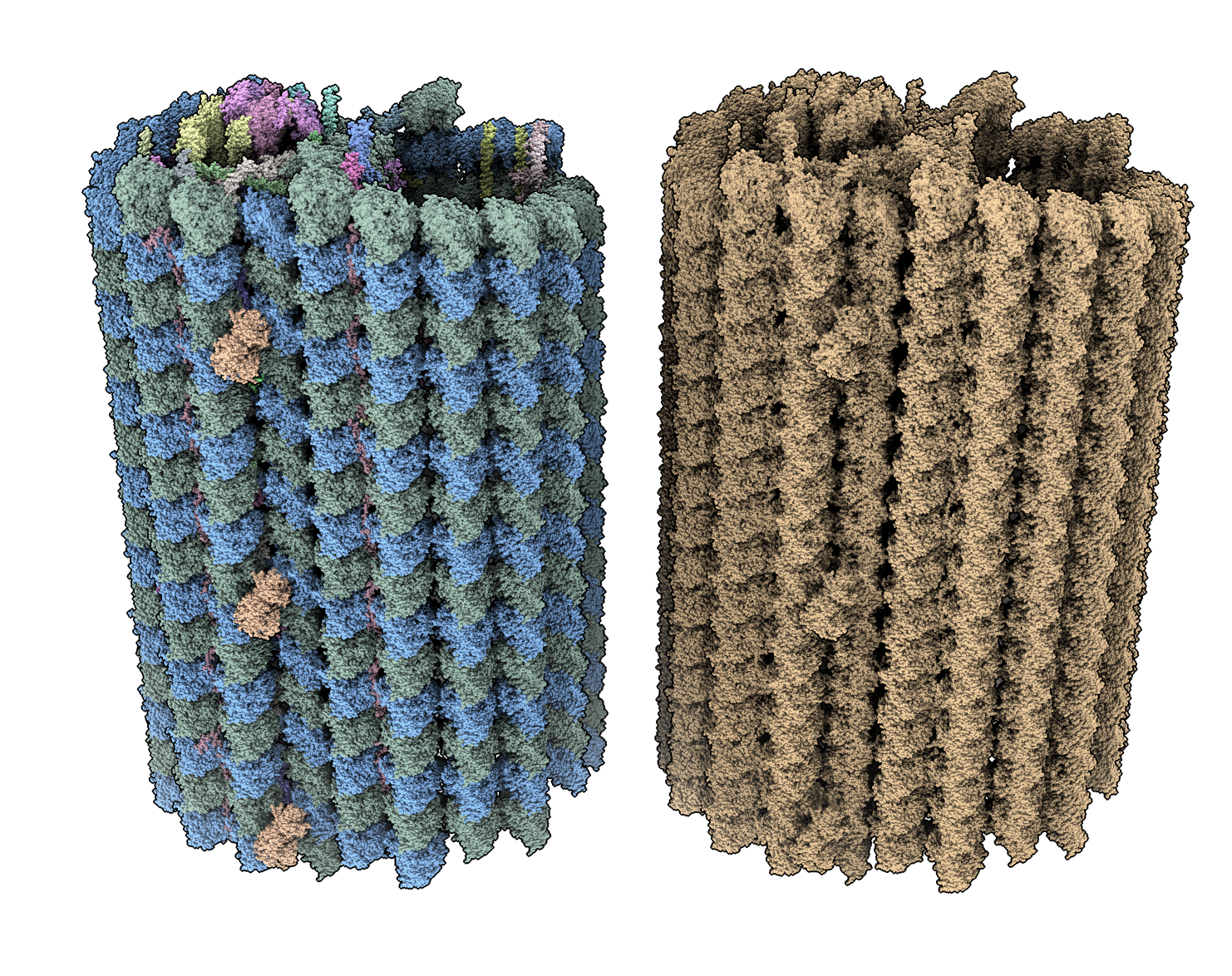 I've attached an image for an example microtubule structure 8iyj comparing single color to color bypolymer.